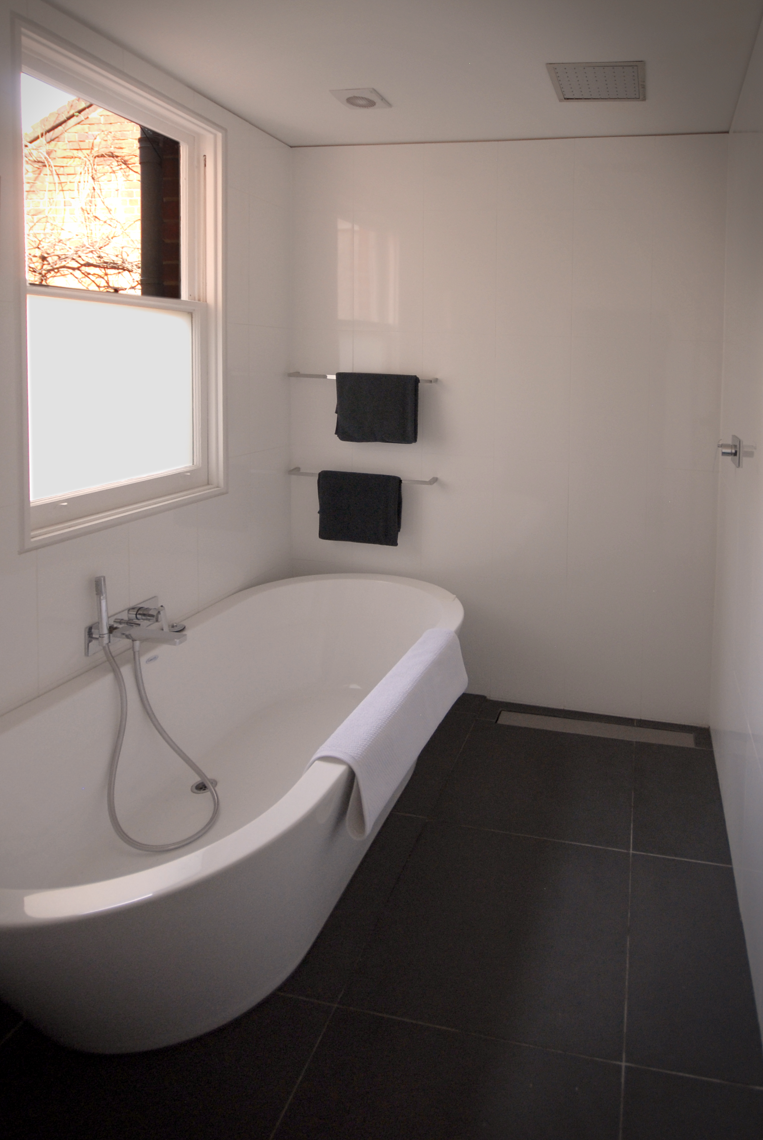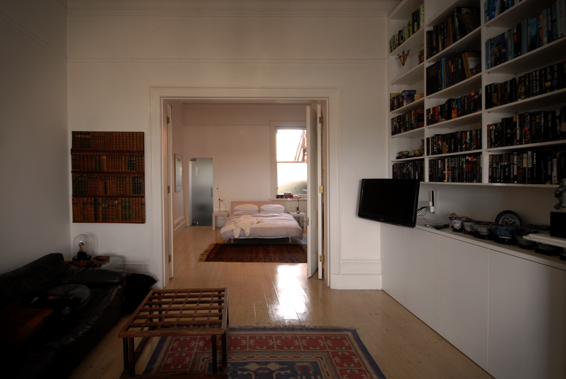 2004 project, recombining 1860's historical guest house into a large modern apartment. The apartment had been seperated into two apartments, then back to one, and then back to two again. Design consolidated and reconfigured the victorian rooms, and circulation into a more suitable and lest wasteful floorplan. Work included new ensuite, baedroom, stairs, greenhouse.