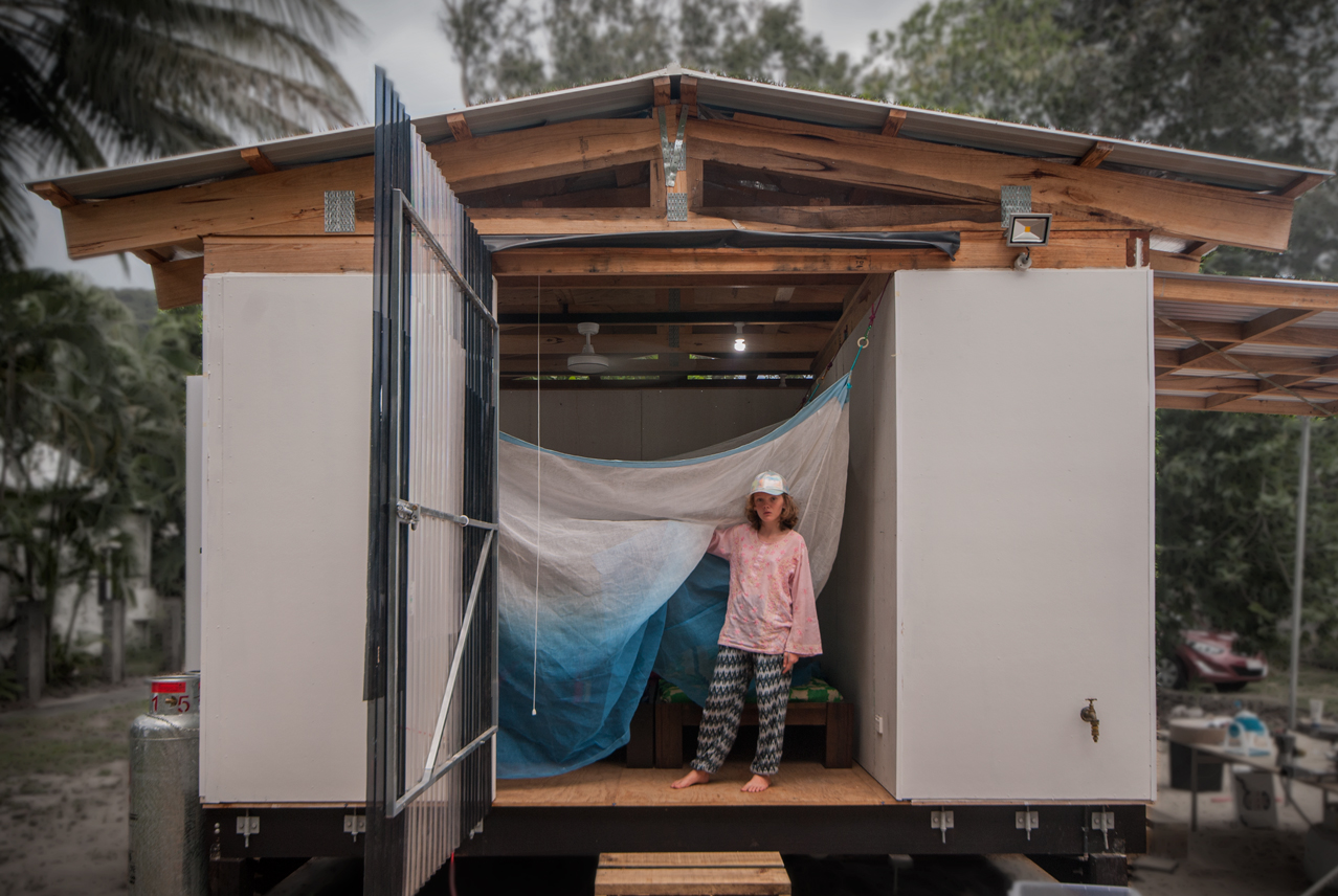 Tiny house prefabricated and build in Melbourne in a factory in Footscray, shipped up to Cairns and trucked to site near the daintree river and siting next to the Coral Sea.
